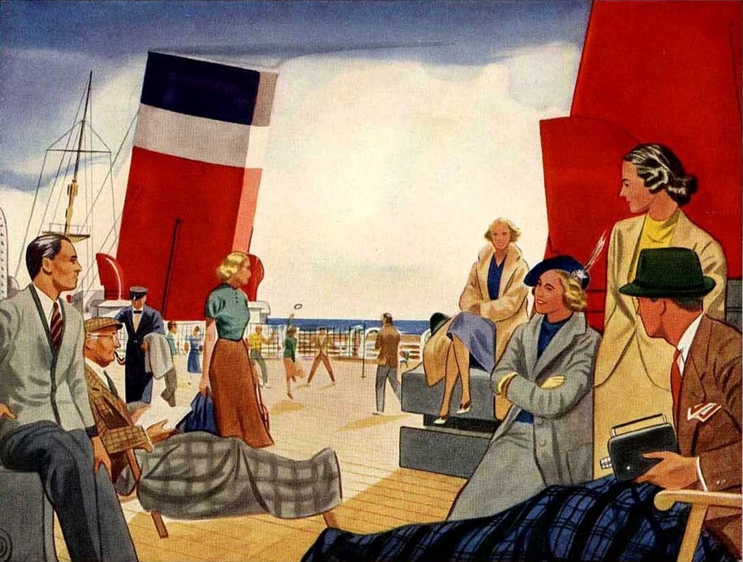 A familia Souza Campos vai usufruindo das agradáveis instalações oferecidas pela 1ª classe. Os mergulhos na piscina, os banhos de sol no deck, os momentos de leitura e o convívio social, sobretudo à hora das refeições que constituem os pontos altos desta viagem.