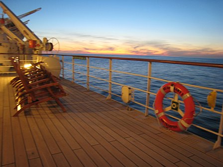 A partir daqui o horizonte é uma linha plana, dando a sensação que deixamos o velho mundo, estando agora num novo universo exterior. Um mundo novo onde o espaço é o do próprio navio.