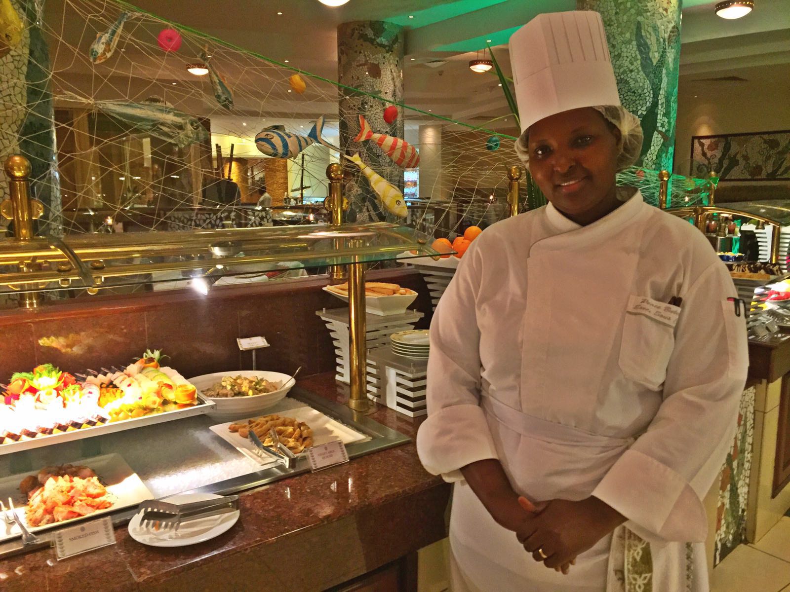 As sobremesas são igualmente variadas com uma excelente oferta de delicias com base em sorvetes italianos, frutos secos e toppings de groselha ou chocolate líquido, pavé de pêssego e gelatina de abacaxi.