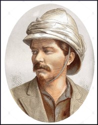 “David Livingstone (1813-1873) considerado o maior explorador do continente negro e um grande herói britânico. Foi um missionário humanista que lutou contra o tráfico de escravos, tendo sido dado como desaparecido em janeiro de 1866.