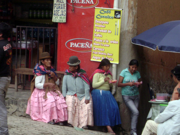 Podemos dizer que este passeio de algum modo valeu a pena. Conhecemos um pouco melhor a cidade e neste mercado ainda vendemos duas túnicas e um batik que, junto com os dollars que acabo de receber, já cobrem as despesas alimentares do dia e uma parte da nossa conta no Alojamiento. Resta saber como iremos reunir uns pesos mais para pagar a nossa passagem de bus até Cuzco no Perú, e guardar alguns trocos para a viagem.