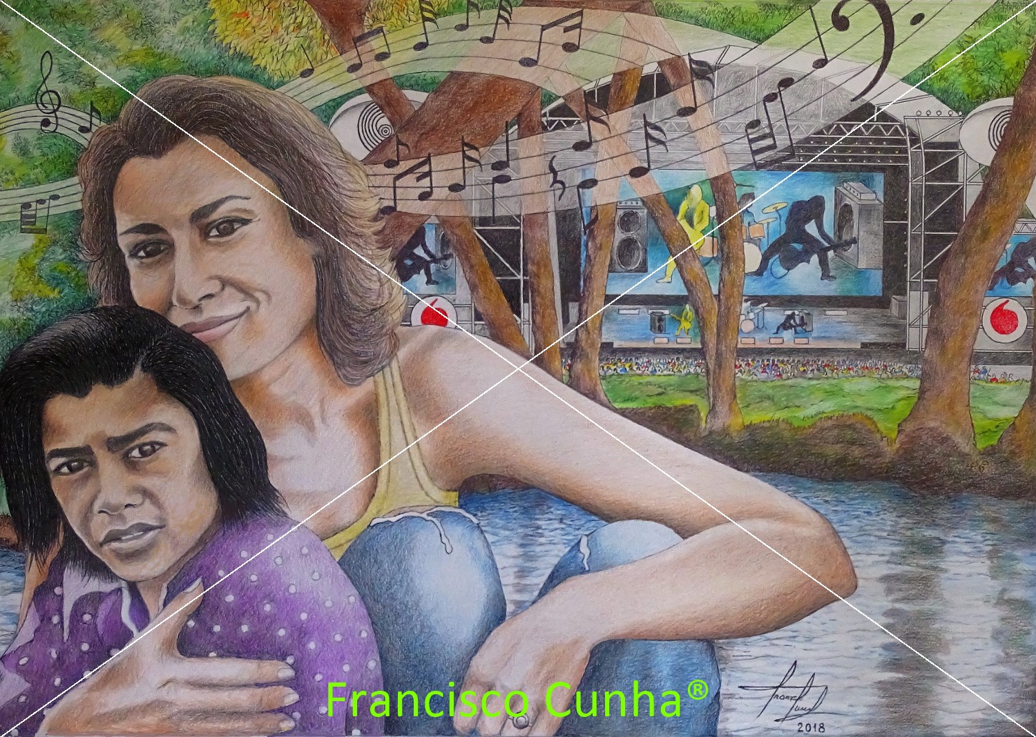 ANDREIA & TIAGO – UMA VIAGEM AOS SONS – Desenho artístico sobre papel Canson 220 gr (PT)